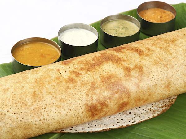 Die herrlich knusprigen, goldfarbenen Pfannkuchen aus Reis- und Urad Dal-Teig sind in Südindien ein genussvolleres Frühstück als die einfachen, gedämpften Idlis! Kombiniert mit Chutney und Sambar sind Dosas üppig und schmackhaft und eignen sich nicht nur zum Frühstück, sondern auch zum Abendbrot oder sogar zum Abendessen.
